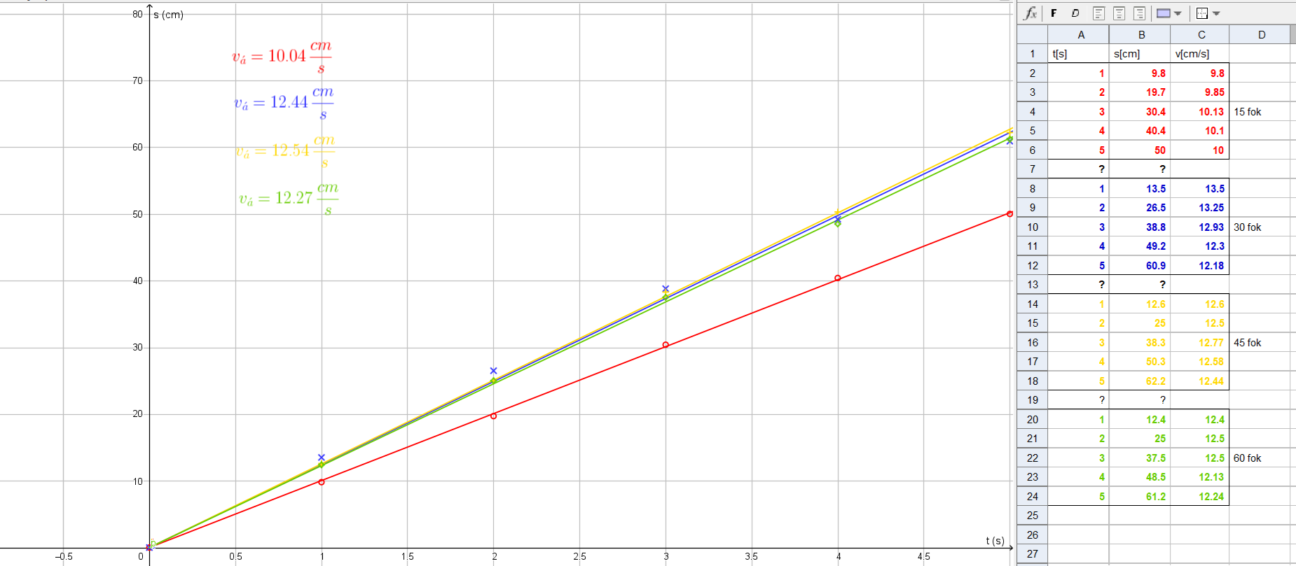 E: Feladatok megoldása. M: Mérés: Buborék mozgásának vizsgálata Mikola csőben. Elkészült egy korábbi mérés eredményeinek megjelenítése geogebra programban. A jobboldali táblázatban az adatokat átírhatjátok a saját mért adataitokra. A geogebra fájlt letöltheted INNEN. A geogebra fájl alapján könnyen elkészítheted saját grafikonodat a kiosztott jegyzőkönyvben. A fájl megnyitásához GEOGEBRA CLASSIC 5.0 programot javaslok mely Windows rendszerre letölthető INNEN. |