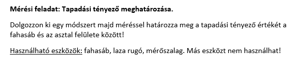 Dinamika feladatok / tesztek. Kedd: Érdekes mérési feladatok: Tapadási súrlódás mérése rugóval és lejtőn szögmérővel. |